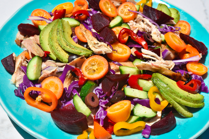 People eat with their eyes first. So I love pretty salads loaded with rainbow colors. The more colorful the salad the yummier it will taste. By using a lot of different colored veggies we are getting a wide range of nutrients and vitamins into our bodies. And the rainbow colors trick us into being fuller […]